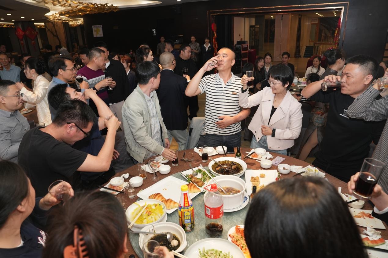 领导致辞完毕,开场舞《凤厘注粲》燃动全场,瞬间烘托出热烈氛围。紧接着晚宴启幕,佳肴上桌,众人举杯同庆,其乐融融。